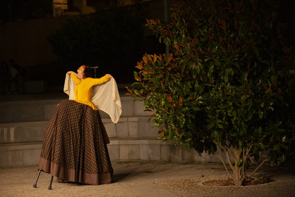 Seguindo um estilo de encenação que tem sido característico do TEATRO SÓ, “SOMBRAS” propõe uma reflexão sobre o mundo emocional de uma vítima de violência doméstica. Sendo o teatro de rua por natureza acessível e popular, a direção artística, contudo, sempre optou pela abordagem de temas de difícil teor de entretenimento e socialmente estigmatizados, procurando trazer uma dimensão pedagógica e redentora. Nas duas peças anteriores – “SOMENTE” e “SORRISO” – os temas da solidão e velhice dão expressão a um espetáculo interventivo, promovendo a reflexão no público, por via da poesia visual. Estes temas, que são assim resgatados à arena sociológica, são encenados sem palavra e entregues ao público que a eles tem acesso por via de uma coreogra a melodramática onde a gramática das emoções vence a eloquência do texto. É justamente neste contexto que é agora trazido a cena “SOMBRAS”, um trabalho que resulta de uma longa pesquisa envolvendo casas de acolhimento, conversas com psicólogos e vítimas. As ações teatrais foram construídas a partir de experiências relatadas. Ao invés da representação da violência, optámos por exprimir as emoções e ações íntimas da vítima. “SOMBRAS” pretende ser uma abordagem intimista, anterior ao exame moral, fazendo do público testemunha involuntária daquilo que não tem lugar na rua: o desconsolo e o desespero de uma vítima.