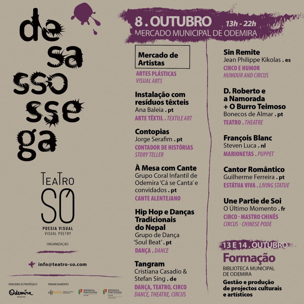 Em 2022 o Teatro Só iniciou uma linha de programação em Odemira, no domínio das Artes de Rua, ganhando corpo a cada ano, alcançando um crescente número de públicos e abrangendo uma maior diversidade de comunidades da região.