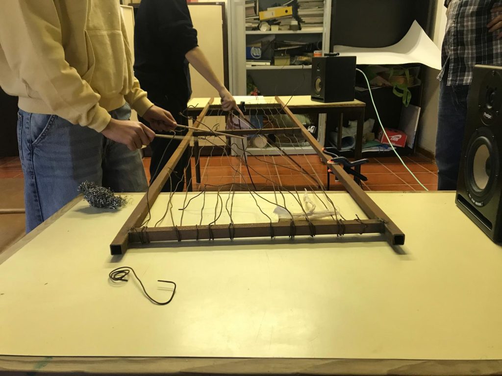 O desafio estético desta residência partiu do desenho como disciplina central para diferentes ensaios de cruzamento com o som e a escultura, numa perspetiva bidimensional e tridimensional, seguindo uma estratégia de desenvolvimento de diversos exercícios/desafios individuais e coletivos.