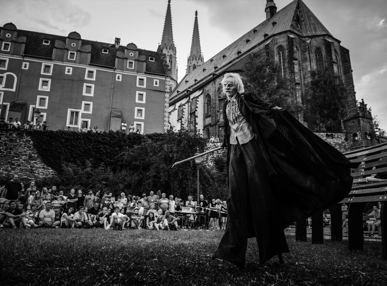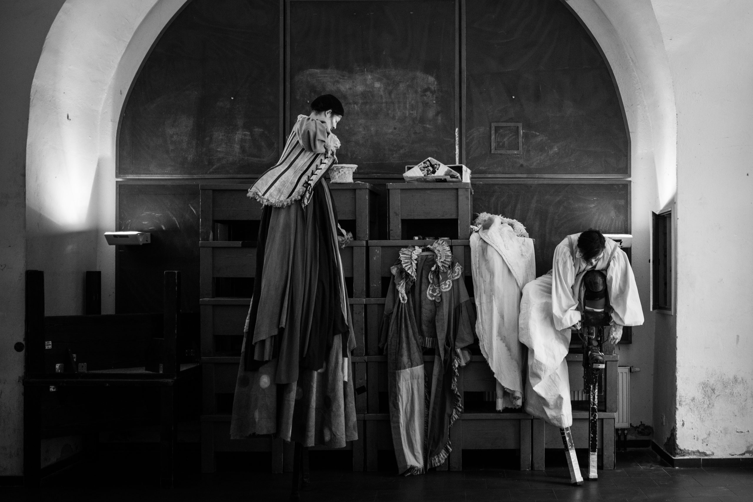 Uma dimensão performativa, que segue a linha matriz de criação do Teatro Só, criação de peças de teatro para espaço público, sem texto, recorrendo à técnica circense de andas, à técnica da máscara e a cenografias de grandes dimensões.